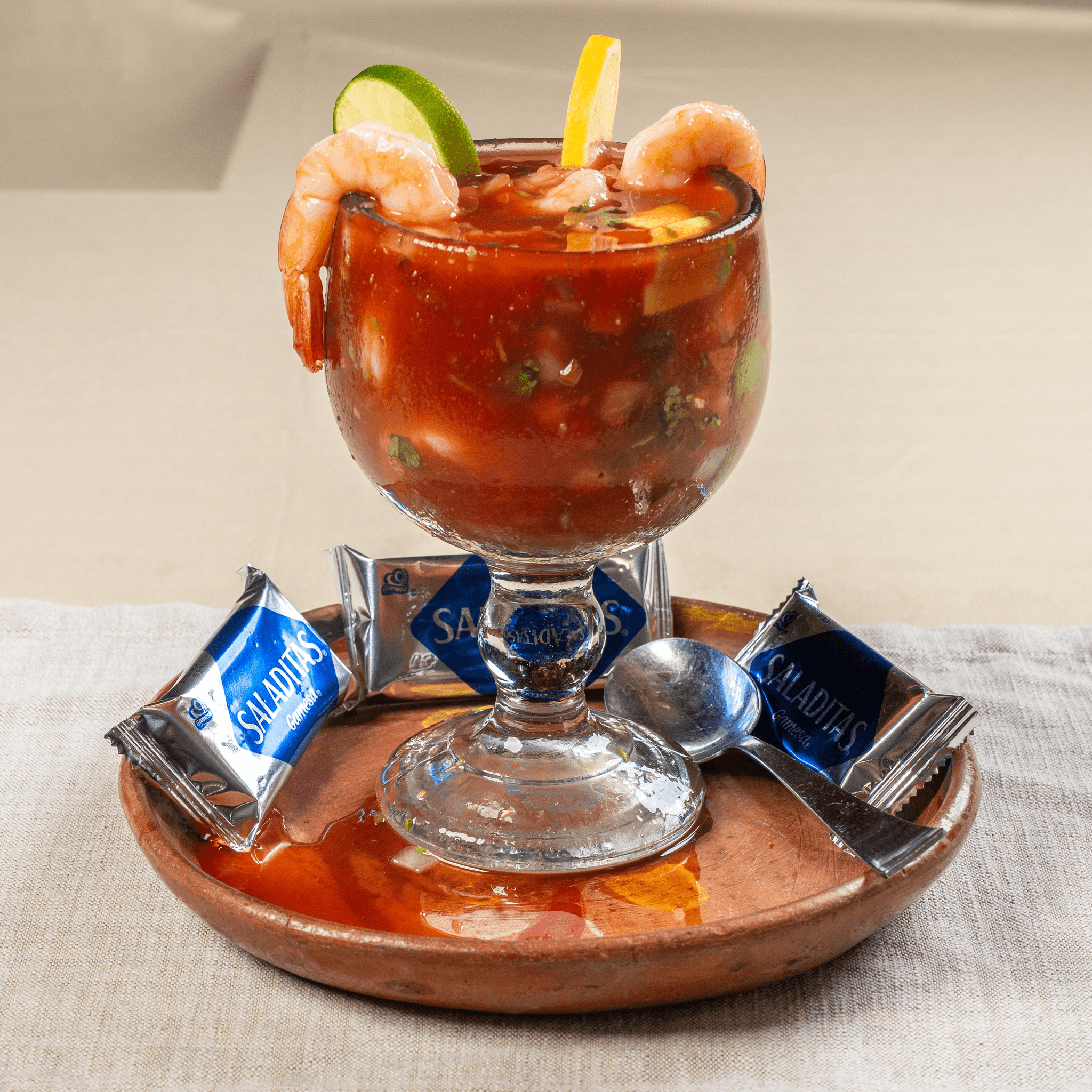 Mix of shrimp, tomato juice, clamato, pico de gallo, avocado and fresh squeezed lime. Comes with crackers.