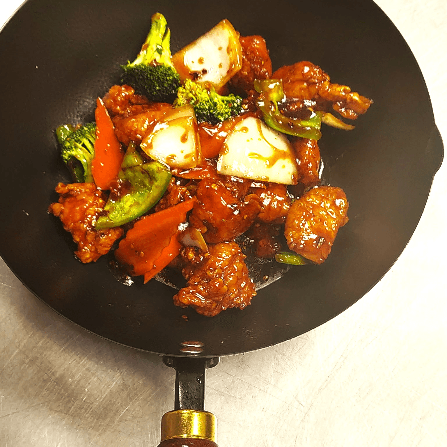 All white meat chicken with broccoli, carrots, and a hand-made brown sauce. Comes with fried rice, 1 crab rangoon, and 1 egg roll. Can be substituted for steamed rice, crab rangoons, or 2 egg rolls instead at no additional charge.