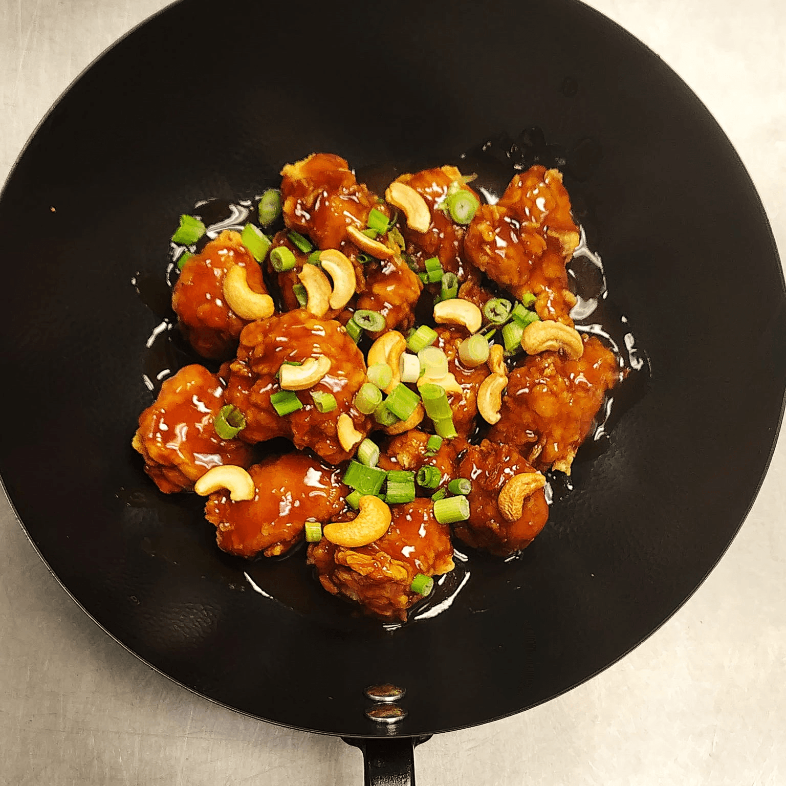 Springfield-style breaded all white meat chicken with cashews, optional green onions, and hand-made brown sauce on the side. Comes with fried rice, 1 crab rangoon, and 1 egg roll. Can be substituted for steamed rice, crab rangoons, or 2 egg rolls instead at no additional charge.