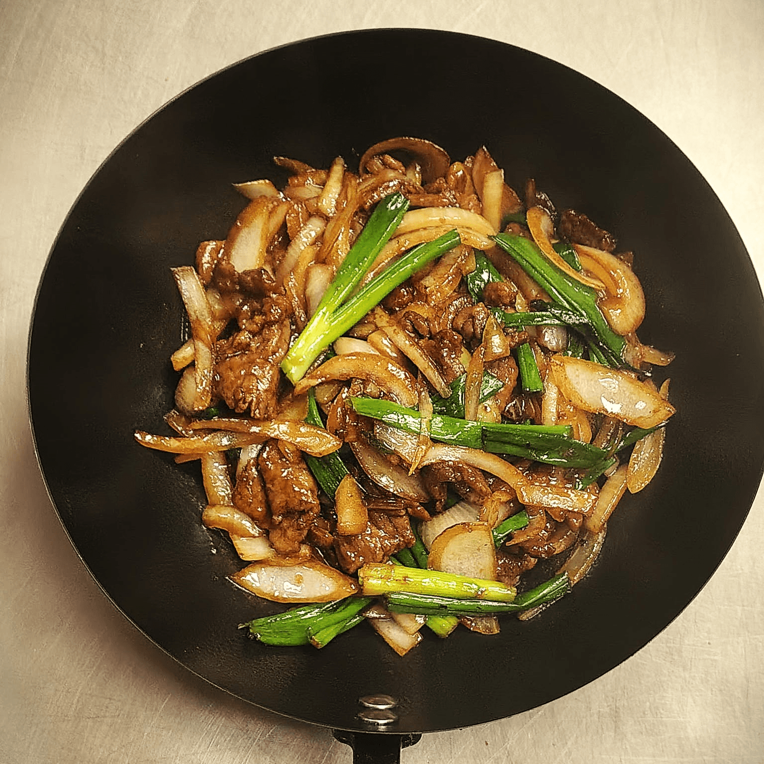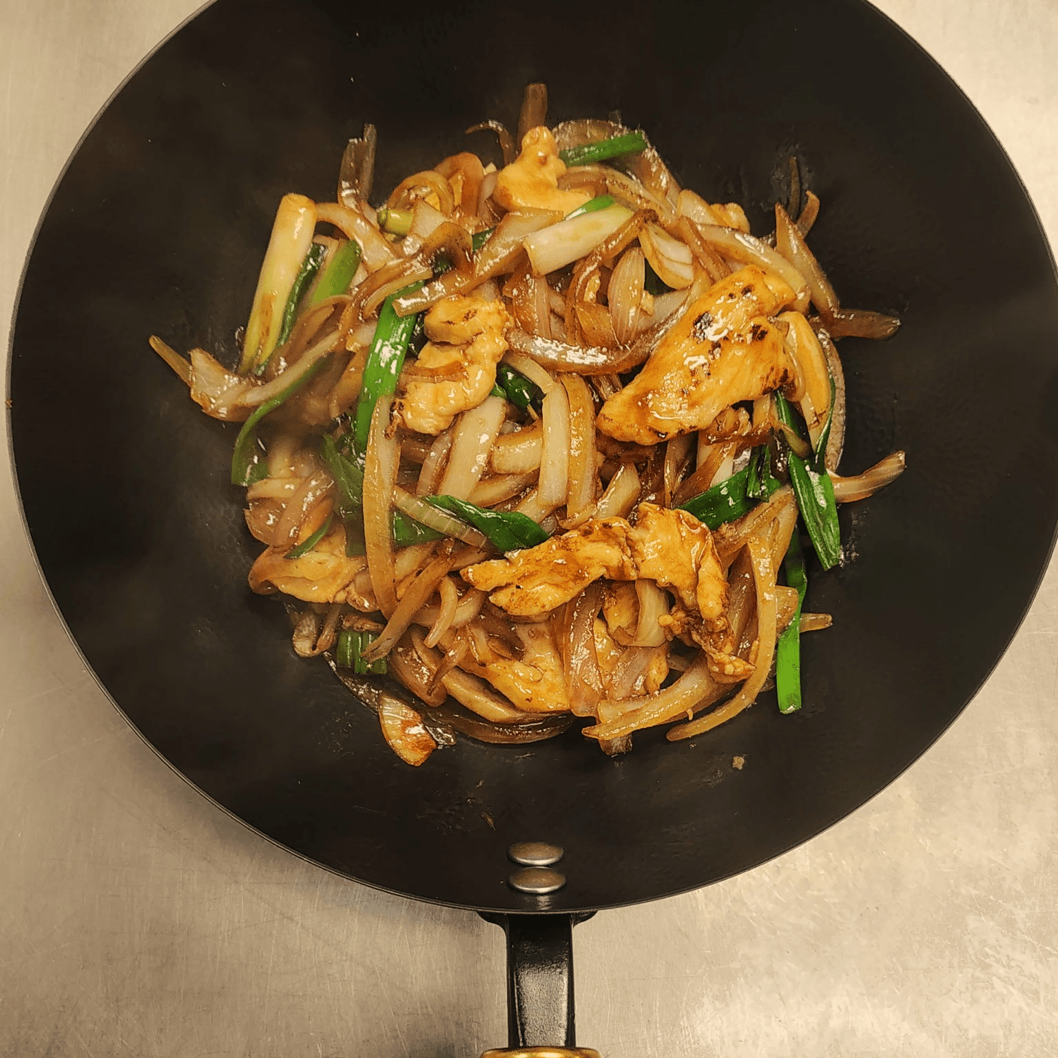 Chicken, beef, and shrimp stir fried with white onions and green onions