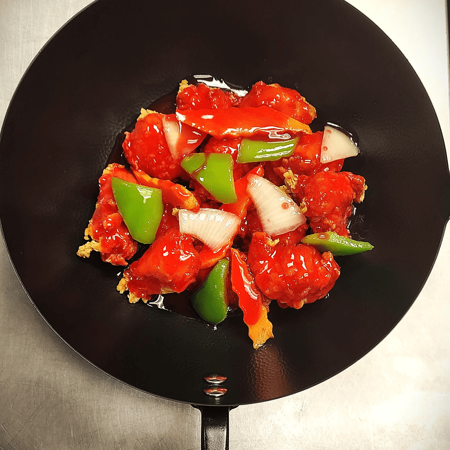 Springfield-style breaded all white meat chicken with onions, carrots, bell peppers, and hand made sauce on the side. Comes with fried rice, 1 crab rangoon, and 1 egg roll. Can be substituted for steamed rice, crab rangoons, or 2 egg rolls instead at no additional charge.