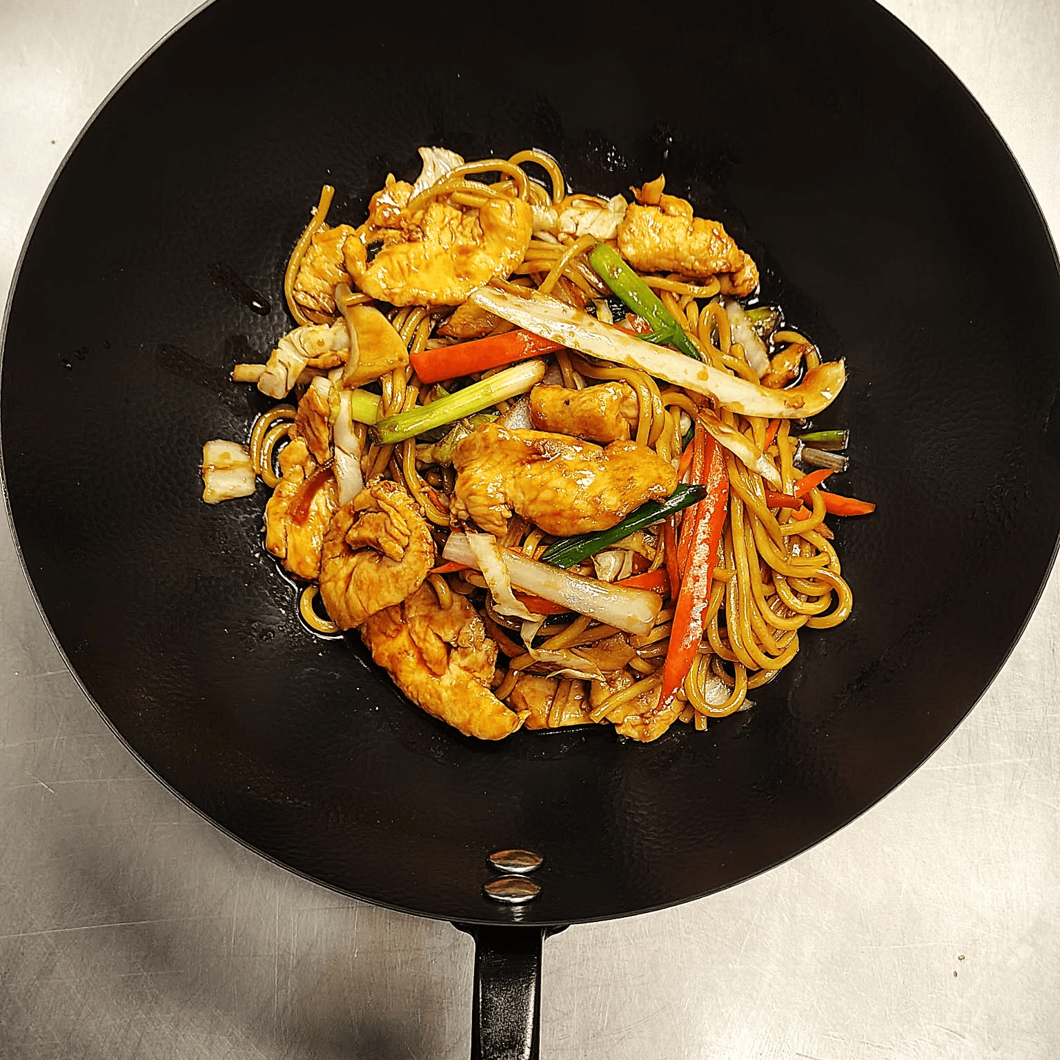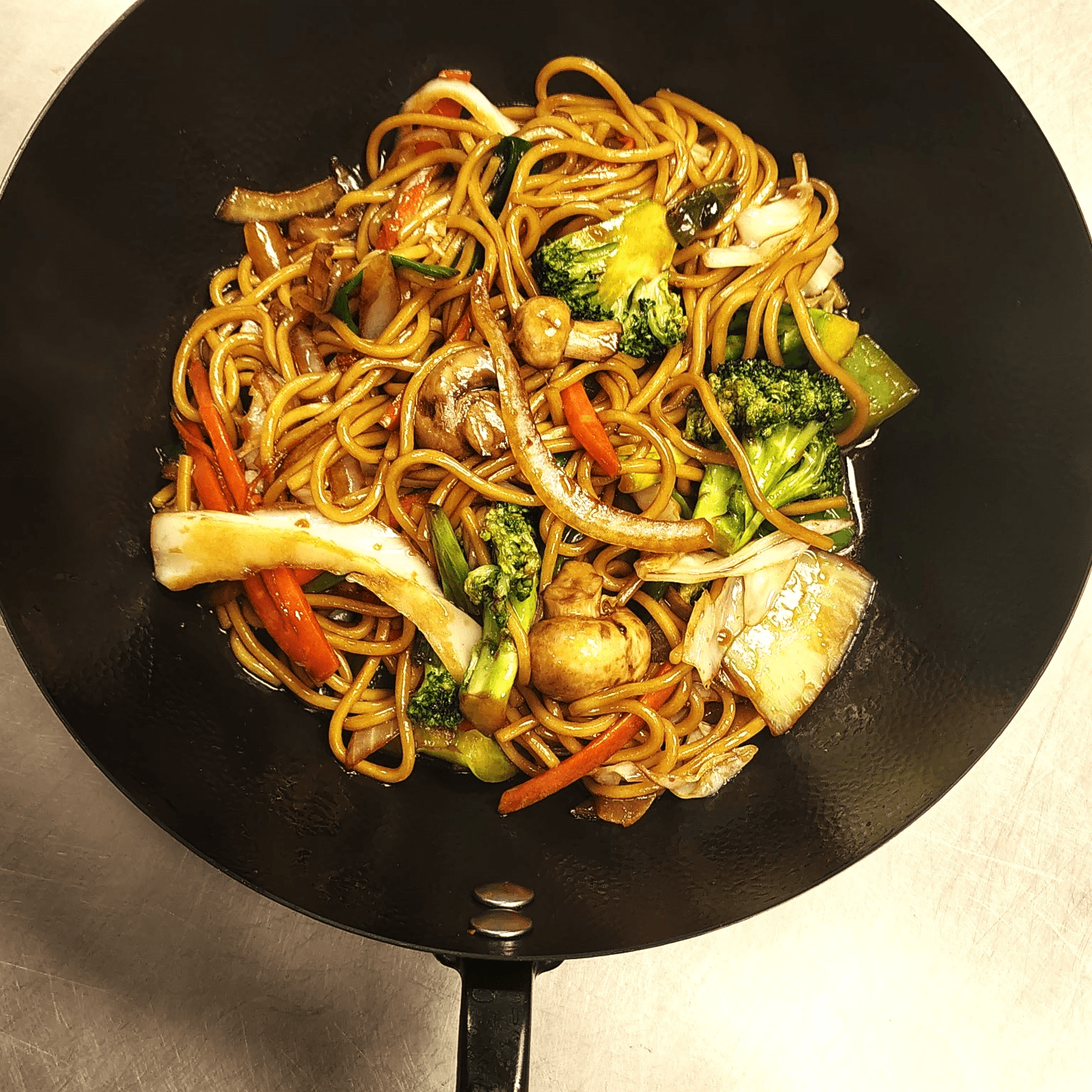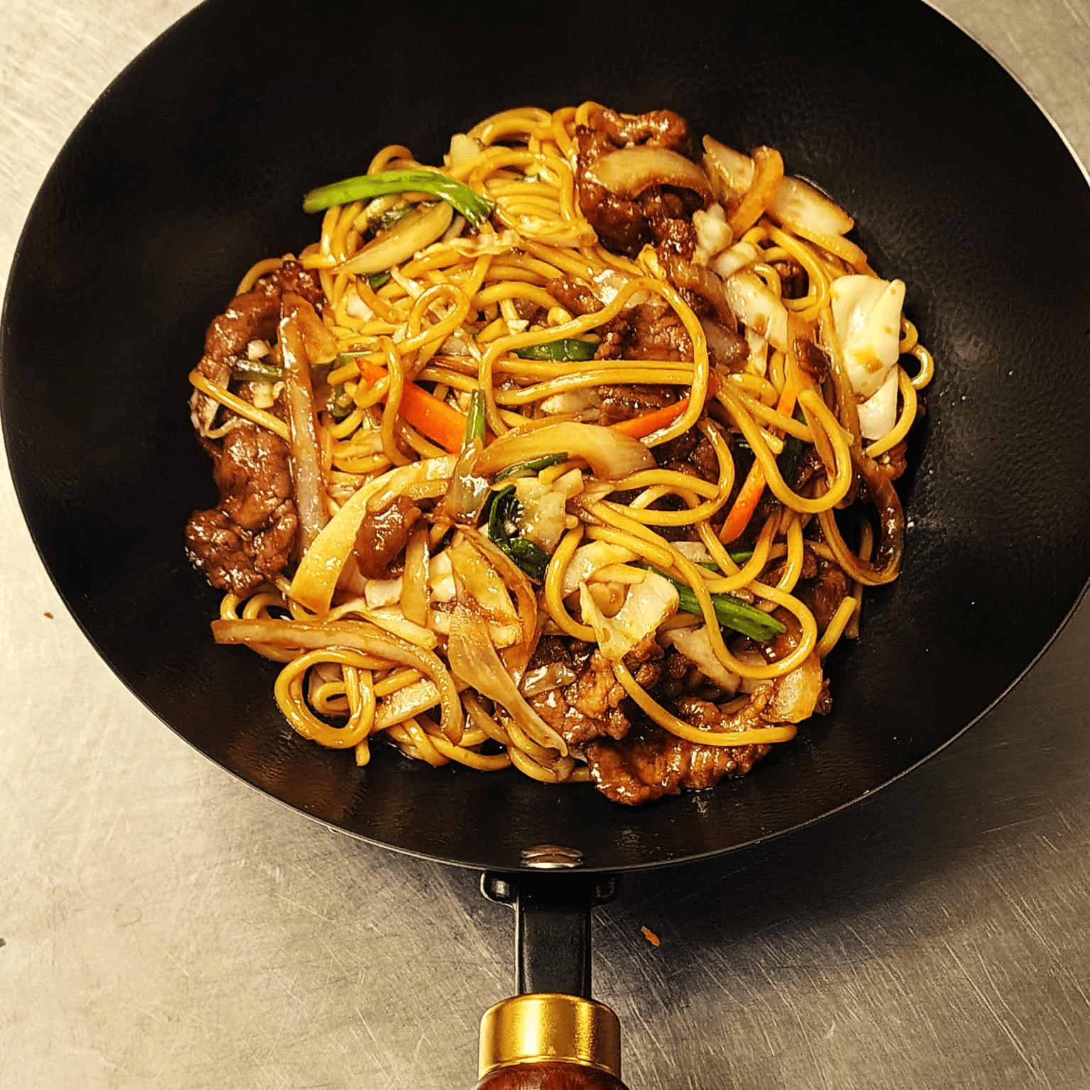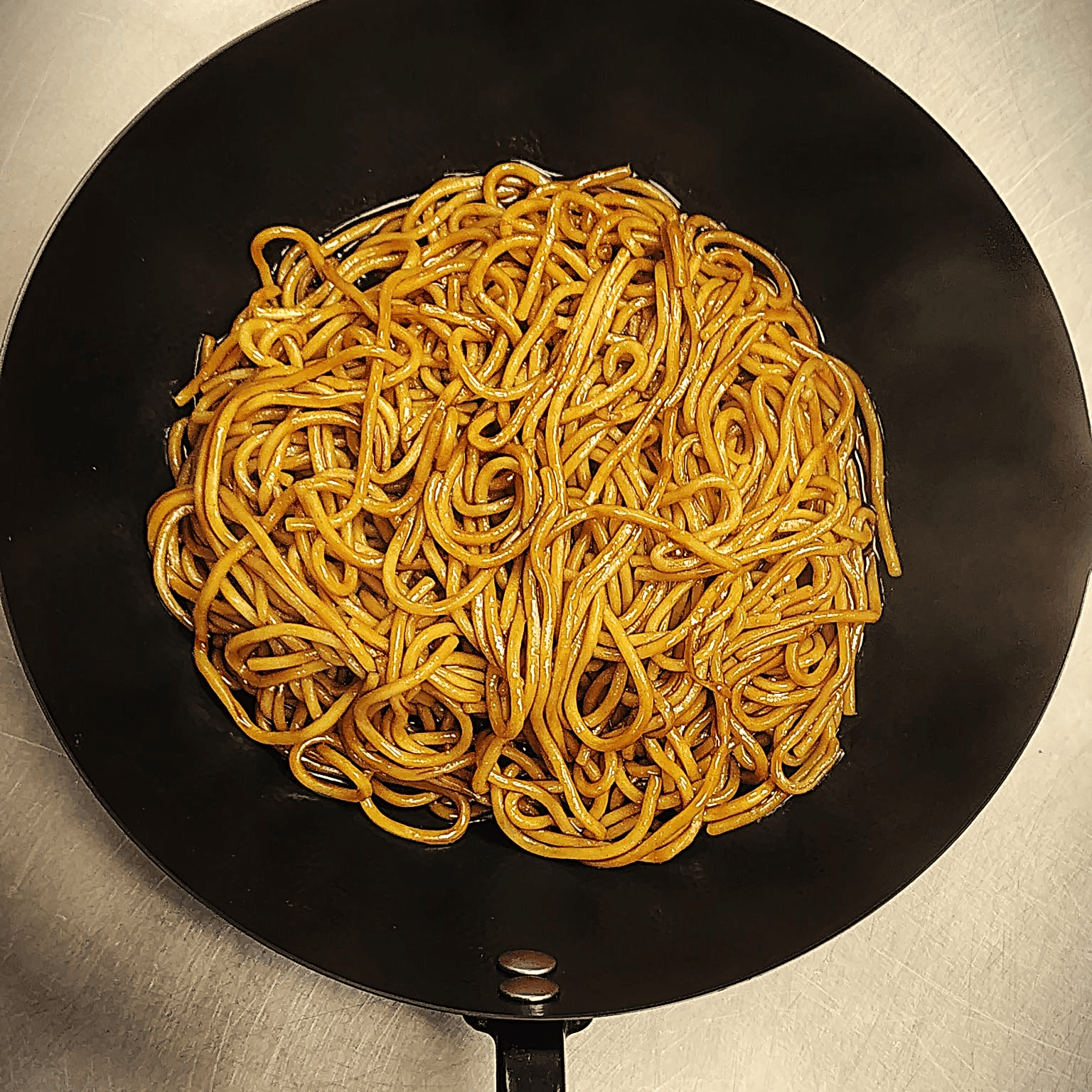 26 oz. traditional Chinese bucket. Lo mein noodles cooked in a brown sauce