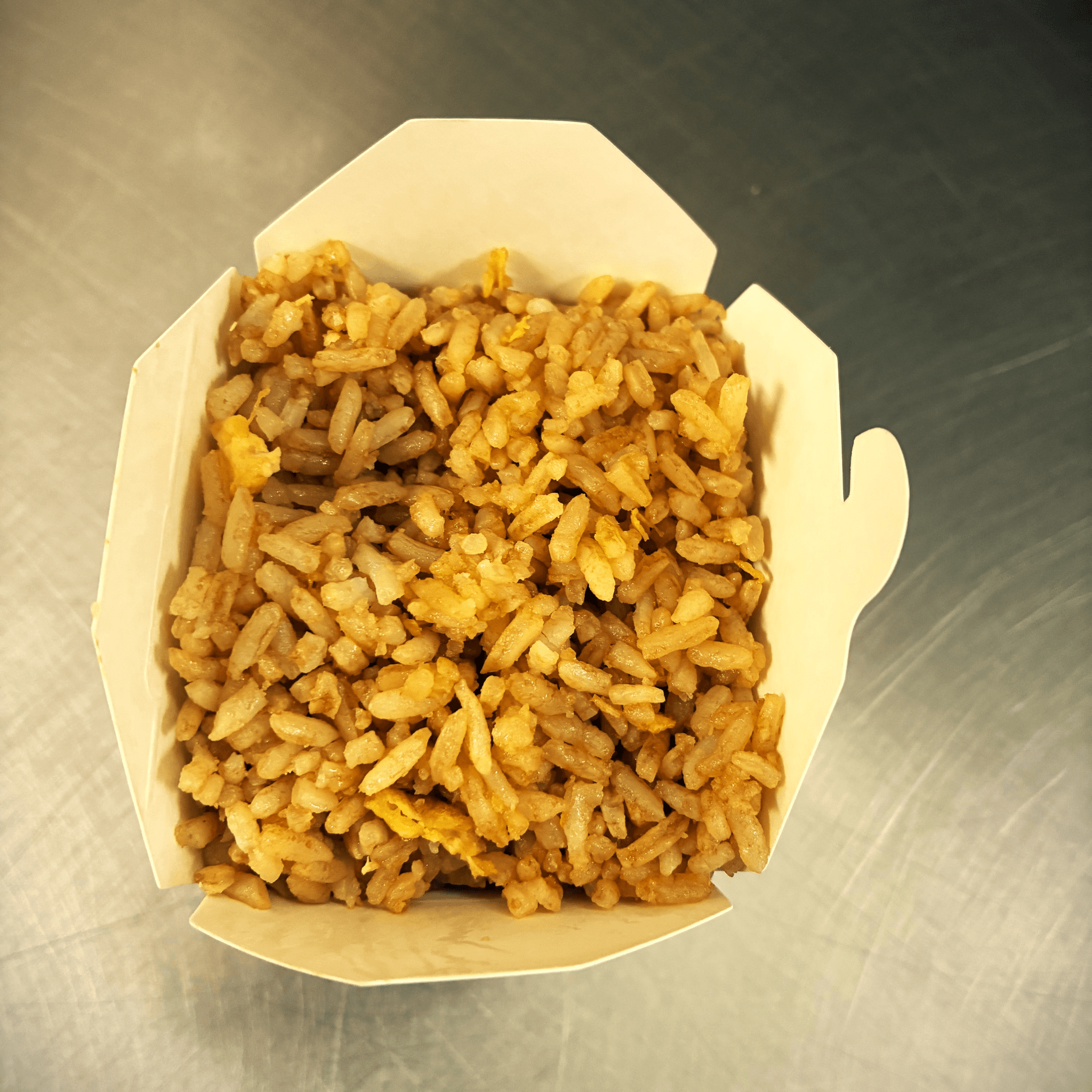 With peas, carrots, and green onions. Comes with fried rice, 1 crab rangoon, and 1 egg roll. Can be substituted for crab rangoons, or 2 egg rolls instead at no additional charge.