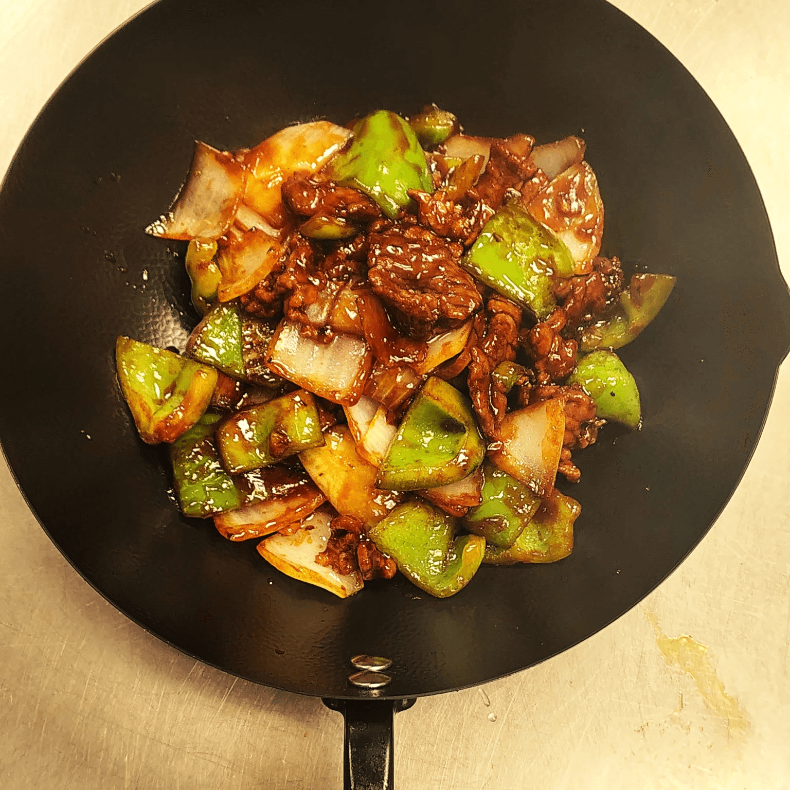6 oz. traditional Chinese bucket. Includes your choice of steamed or fried rice. Click a menu image for a preview of the dish. Beef, onions, and bell peppers